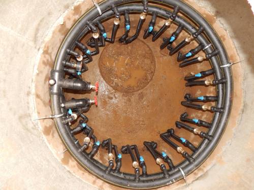 Равномерное распределение рассола по зондам с помощью расходомеров.